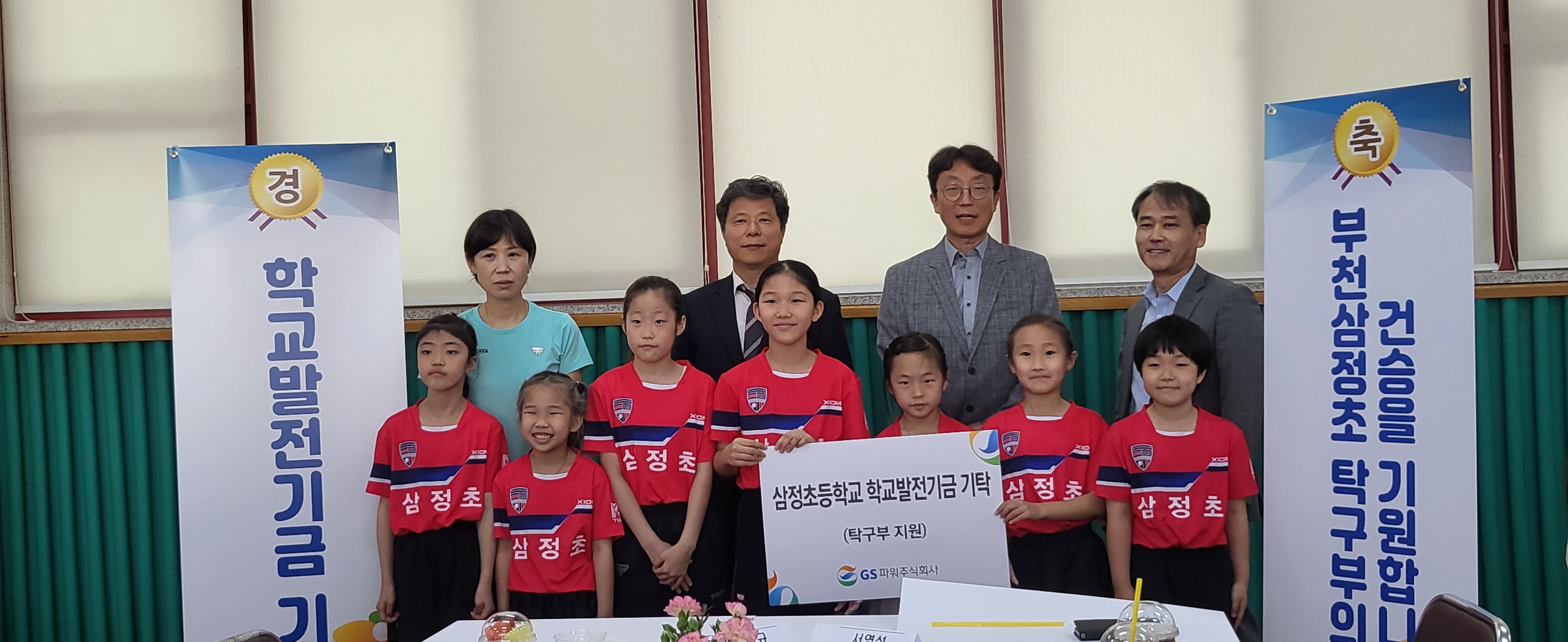 GS파워가 부천삼정초등학교 탁구 꿈나무들을 위해 학교발전기금 1000만원을 후원하고 지속적인 관심과 후원을 약속했다.