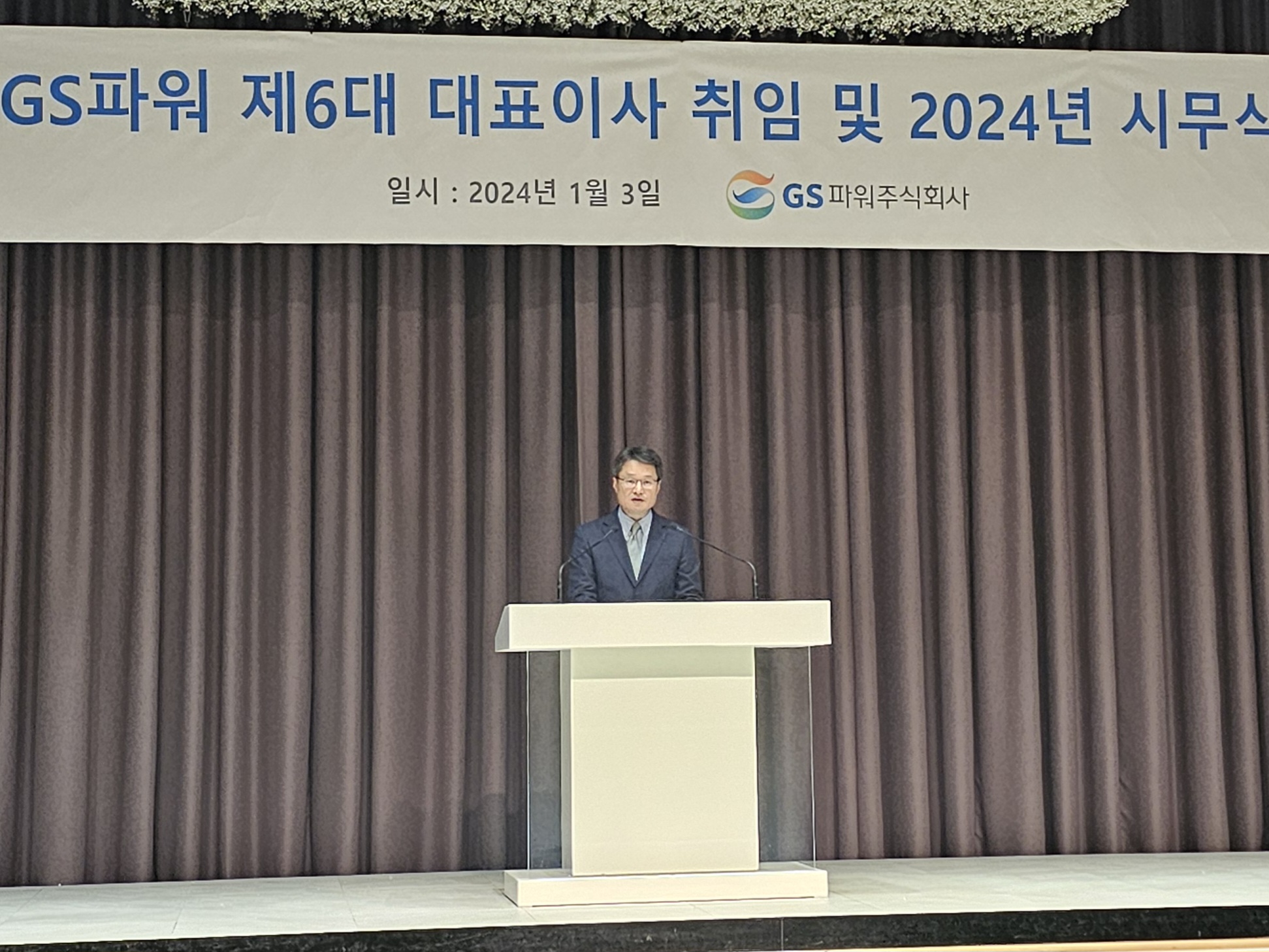 GS파워는 3일 경기도 안양시 평촌에 위치한 아르떼컨벤션에서 제6대 대표이사 취임 및 2024년 시무식을 가졌다고 밝혔다.