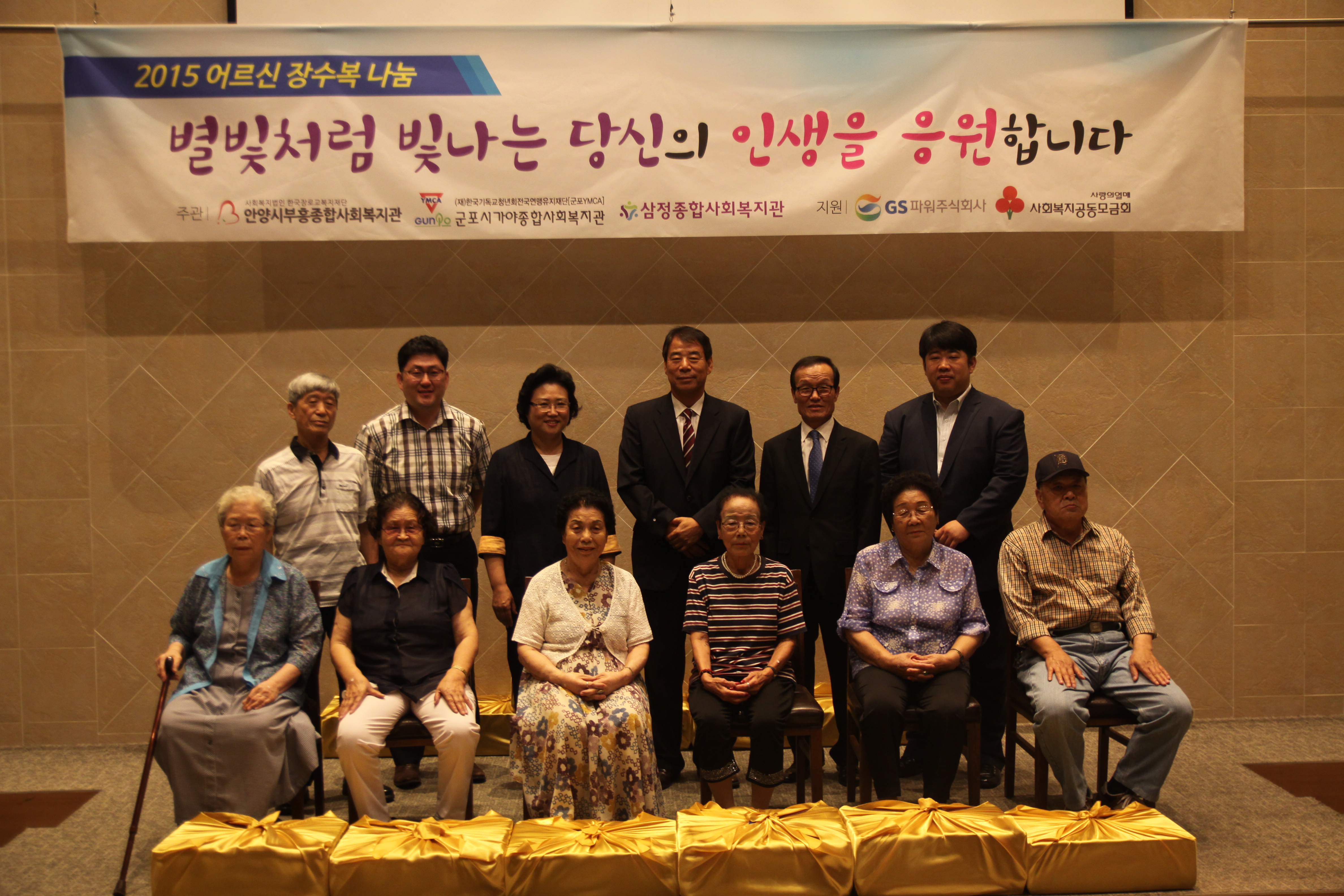 GS파워 손영기 사장은 지난 8월 12일(수), 안양 마벨리에 뷔페에서 인근지역 독거 노인들을 초청하여 어르신들의 장수를 기원하는 『수의(壽衣) 전달식』을 가졌다.