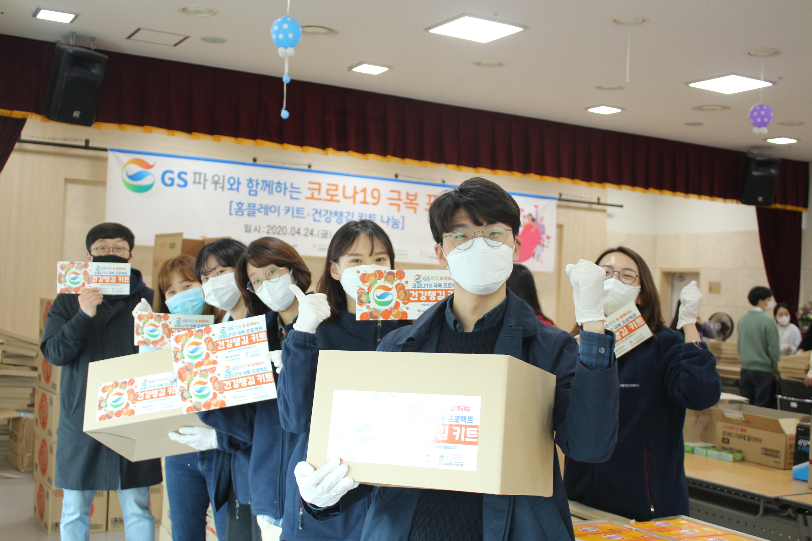 이날 치러진 캠페인 마당에는 GS파워 측이 준비한 마스크와 물수건 4천 여개가