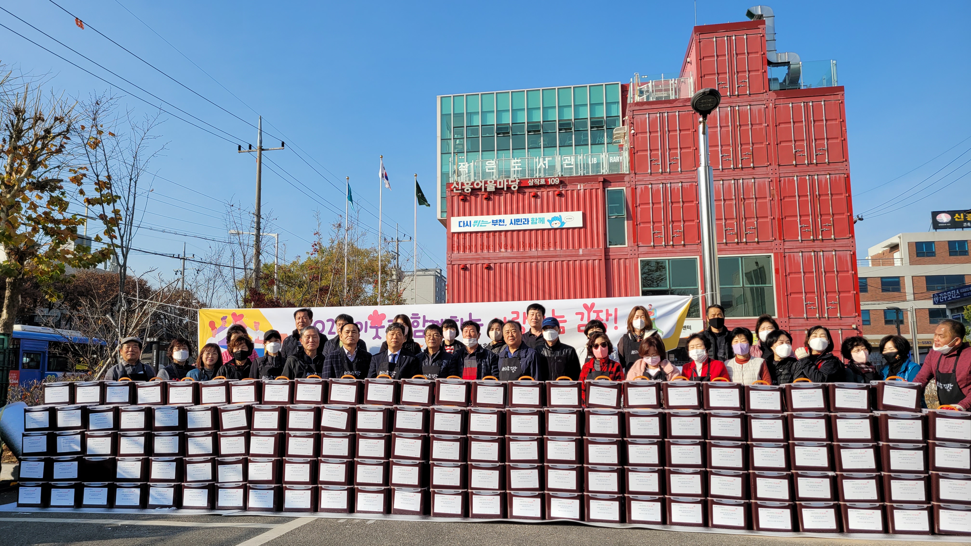 사랑의 김장나눔 행사는 인근 주민들과 함께하는 겨울철 행사로, 지난 11월 16일 부천오정동복지협의체에 김치 300박스 전달을 시작하여 11월 25일에는 신흥동과 약대동, 삼정복지관 등에 총 1260박스의 김치를 전달했습니다.