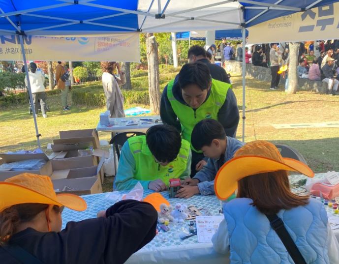 GS파워 사내 봉사동호회 회원들도 체험마당에서 에너지 체험부스를 운영하며 어린이들에게 에너지 생성 원리를 알려주는 교육봉사에 나섰습니다.