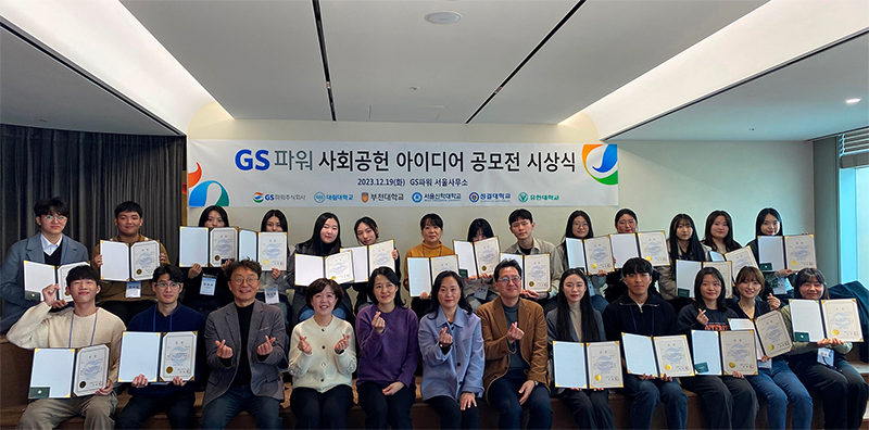 지역사회 5개 대학교 학생들이 GS파워 사회공헌 아이디어 공모전에서 우수한 성과를 거둬 시상식에 참석했다.