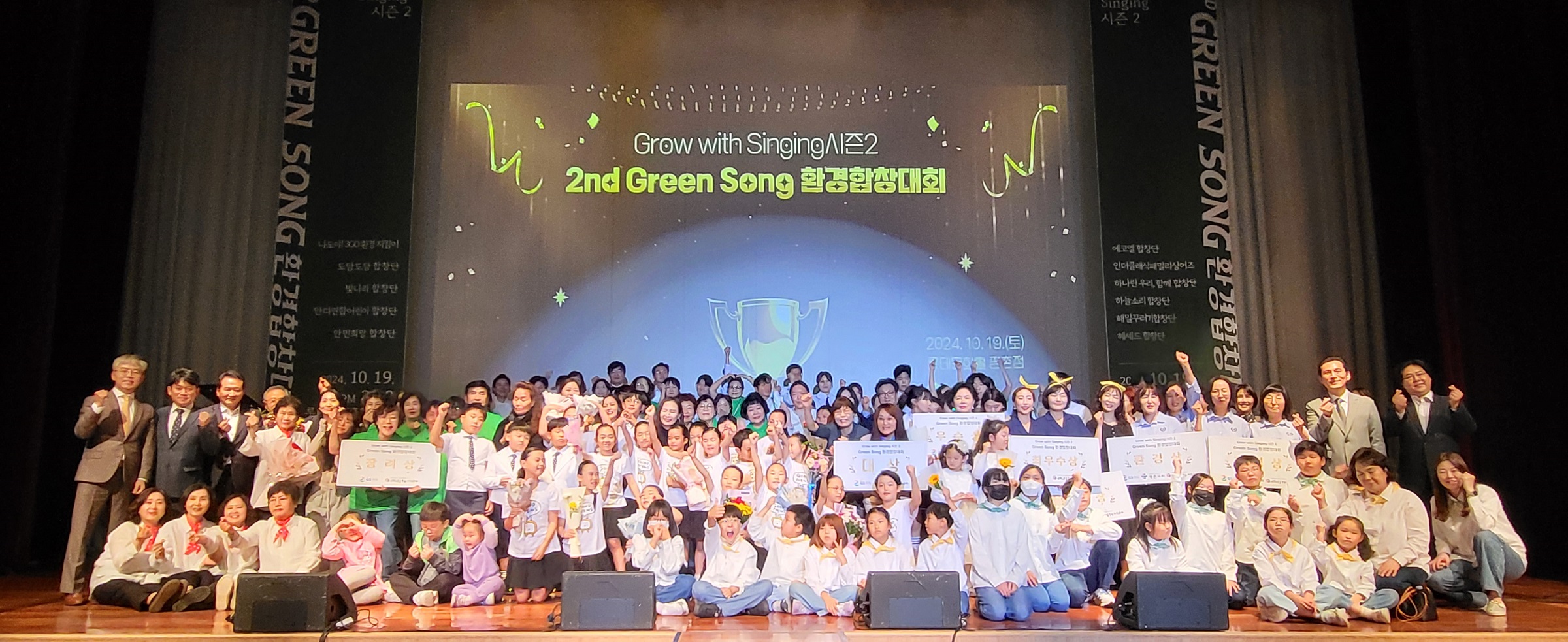 합창대회에서는 합창 실력과 환경 미션 점수를 종합해 대상 1팀, 최우수상 1팀, 우수상 2팀, 특별상 1팀이 선정되었으며 친환경 미션을 지속 수행한 5인이 친환경미션상을 받았습니다.