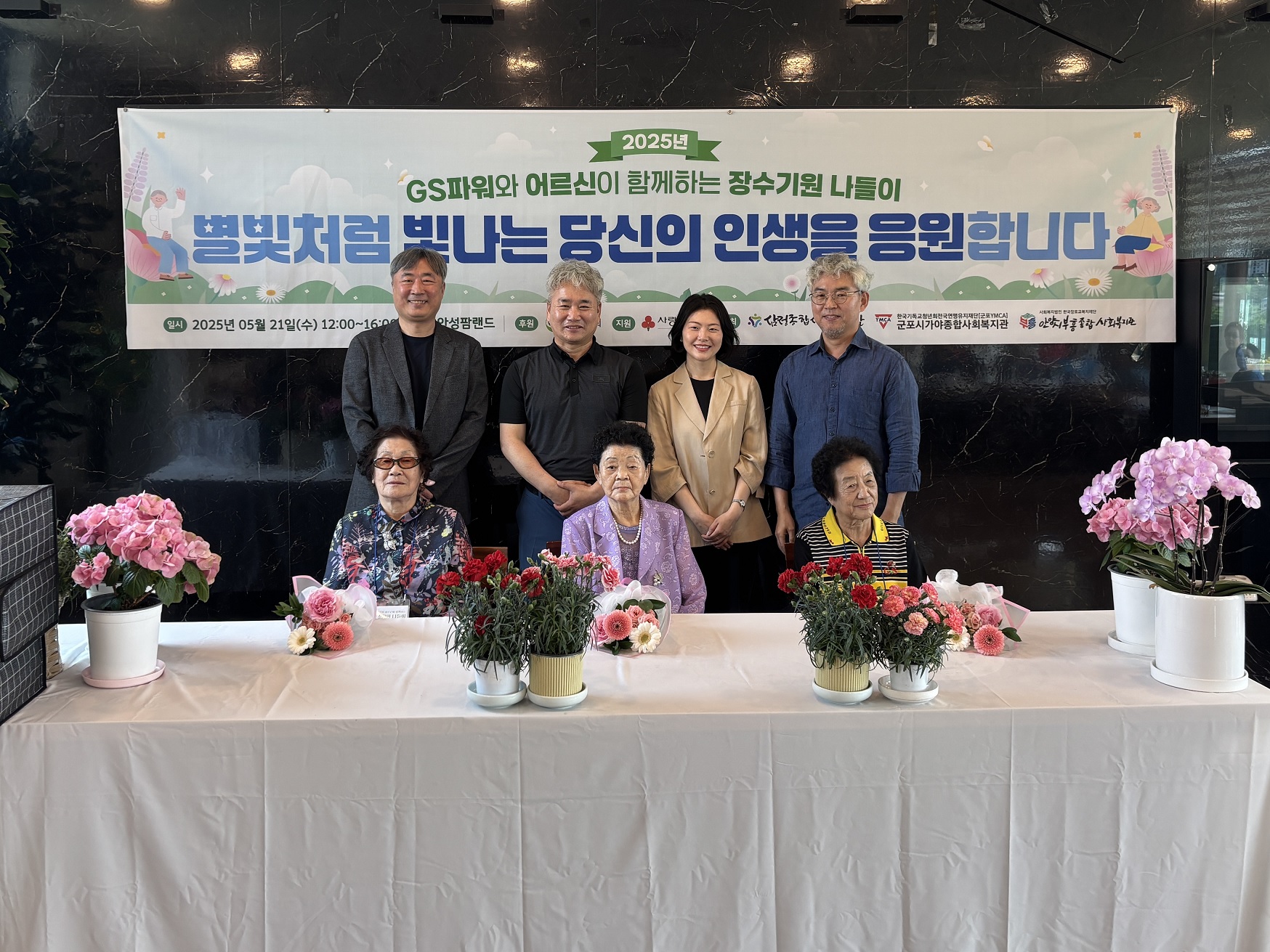 부천 삼정종합사회복지관, 안양 부흥종합사회복지관, 군포 가야종합사회복지관과 함께한 이번 행사는 70세 이상 어르신을 대상으로 메이크업, 오찬 및 장수잔치, 비누 공예 체험, 장수사진 촬영 순서로 진행됐습니다.