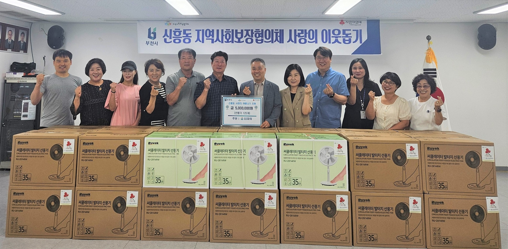 GS파워는 경기사회복지공동모금회에 5백만원을 기부하여 신흥동 어르신 125가구에 전달할 써큘레이터 125개를 마련했습니다.