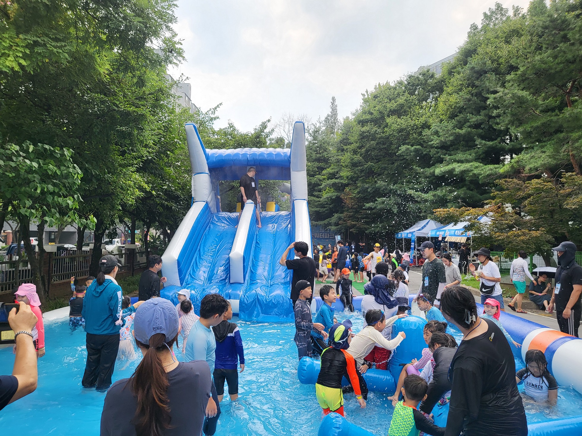 올해는 워터풀장 3개가 마련돼 유아/저학년/고학년 풀장을 구분해 운영했으며 가족이 함께 참여할 수 있는 이벤트 게임, 공연, 먹거리 부스, 생필품 나눔마켓 등을 진행했습니다.